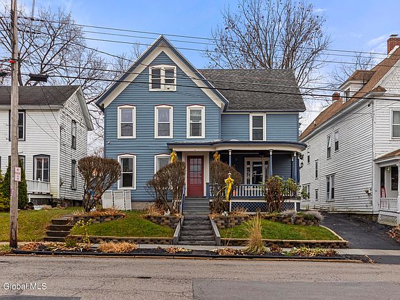 Discover a piece of history in Gloversville's historic district. This large Victorian home with charming wrap-around porch, invites an experience of timeless elegance and modern comfort. Inside, 4 spacious beds / 2.5 baths, offer a perfect balance of cozy living and modern efficiency. The layout is expansive, with rich tiger wood flooring. At the heart of the home is an updated kitchen with Cambria countertops and modern appliances, ready to inspire any culinary enthusiast. The home boasts a new Nexus tankless hot water system, new windows, tastefully updated bathrooms and more. When it's time to step out, you'll find downtown just a stone's throw away, making easy access to Main St, shopping, gas station, the post office and more. Don't let this gem slip away. Schedule a Showing Today!