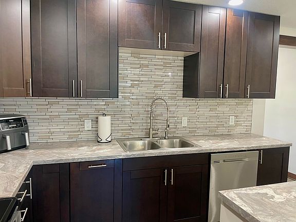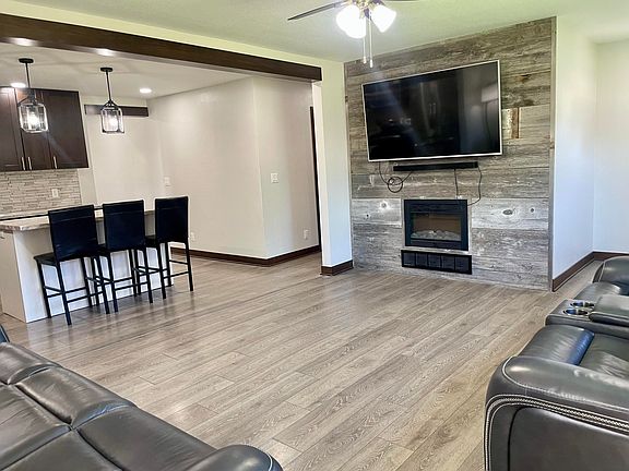 Adorable ranch-style home, fully renovated Open kitchen updated with soft-close cabinetry, tile backsplash, stainless steel appliances, and center island breakfast bar. Large formal dining room/ flex space with LVP flooring. 2 bedrooms plus huge full bath with dual vanity and attached main floor laundry plus spacious closet. New roof 2023, updated windows and cement board siding.
