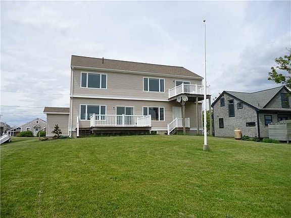 This is a great value and a must see! Needs nothing but a new owner to appreciate such incredible ocean views! Great summer rental potential or move right in and enjoy low maintenance waterfront living all year long. Multiple decks for entertaining, new kitchen, upstairs den with gas fireplace, and other sunny bright rooms throughout this home built in 2007. The property abuts conservation land, ensuring your views for generations to come. Close to walking trails, beach and restaurants. Cherry floors throughout. One car garage. There is a 2015 completed elevation certificate. The house finished floor IS above the flood elevation, however the ground elevation around the house is lower than the flood elevation. Depending on insurance company (or mortgage) rates would probably be reduced.