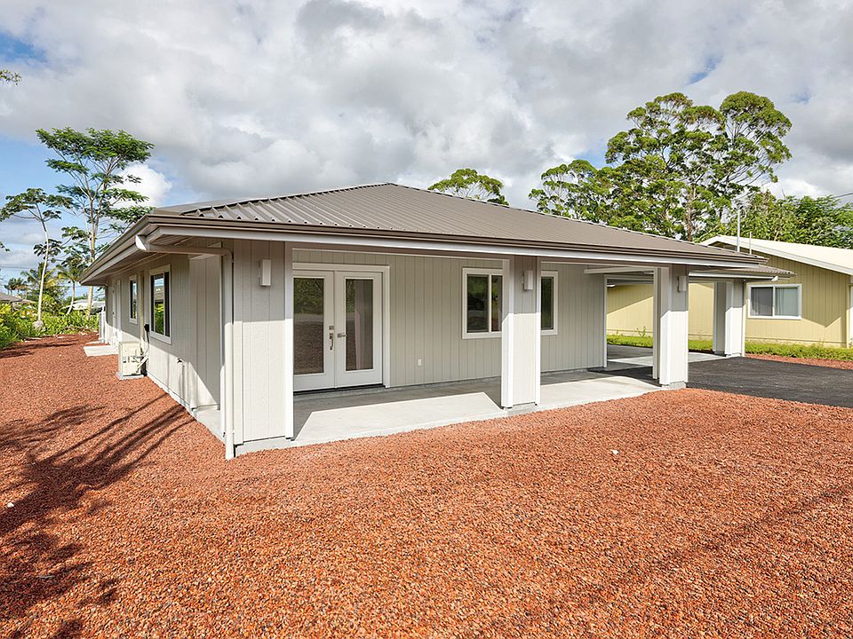 This newly built 3-bedroom, 2-bathroom home offers 1,485 sq. ft. of living space and a total of 2,220 sq. ft. under roof, all set on a 10,500 sq. ft. lot in the fast-growing Ainaloa Subdivision.<br><br>A double-door entry welcomes you into the home from the front lanai and into the bright, open-concept great room, where the living, kitchen, and dining areas flow together seamlessly. High ceilings, recessed lighting, and a split A/C system with ceiling fans keep the home cool and inviting year-round.<br><br>The kitchen is a true centerpiece, featuring:<br>	•	Sleek Quartz countertops<br>	•	Soft-close cabinetry with under-cabinet lighting<br>	•	A spacious island perfect for cooking and entertaining<br><br>All three bedrooms are thoughtfully situated on the same side of the home for comfort and convenience. The laundry room includes a utility sink and storage cabinet, adding to the home’s functionality.<br><br>Both bathrooms are designed with style in mind, featuring extended tiled walls, modern finishes, and LED mirrors for a spa-like feel. <br><br>Outside, you’ll find a 2-car carport that doubles as an extended lanai or gathering space, plus an asphalt driveway for convenience and curb appeal. <br><br>Catchment water system with UV filtration system. <br><br>This home blends modern comfort with thoughtful design—ready for its very first owners.
