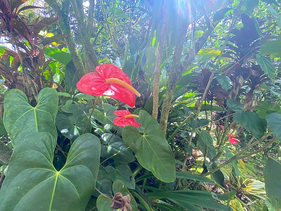 Enter the property through the chain gate, driveway will lead you past all three structures all the way to the back of the property. Planted along the driveway and throughout the property you'll find a wide variety of edibles and ornamentals, including but not limited to native Ohia trees, coconut, bananas, lots of citrus, avocado, ice cream bean, pineapple, mango, gardenia, puakenikeni, night blooming jasmine, exotic and rare hibiscus varieties, colorful crotons, anthurium, a huge variety of ti leaf, fragrant and colorful ginger flowers, roses, and so much more! There are also multiple varieties of bamboo. The variety of plants is truly stunning! The longer you spend on this property the more it will reveal it's beauty.