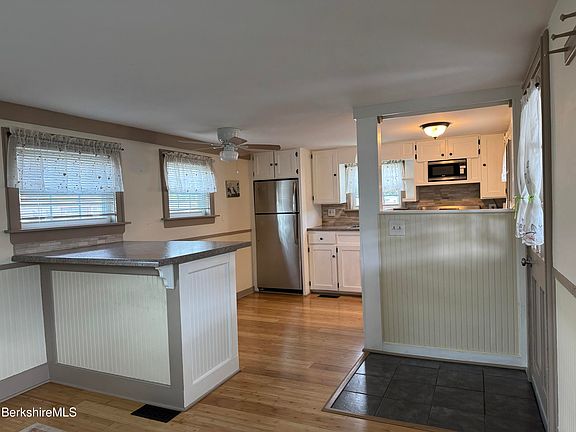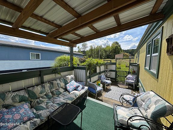 Cozy and move-in ready! This well maintained 2 bedroom, 1 bath mobile home features a bright kitchen with stainless steel appliances, a freshly renovated bath, and flexible 3-season room that could be extra living space or even a 3rd bedroom with some work. Enjoy a covered porch for relaxing outdoors, updated roof, and well-kept exterior. The renovated bathroom features subway tile, built-in shower seat, and modern finishes. Roof replaced just a few years ago, exterior paint kept up annually by prior owner, and gas heater/tank recently replaced. Covered porch, laundry area, and shed add convenience. Easy living in Cheshire!