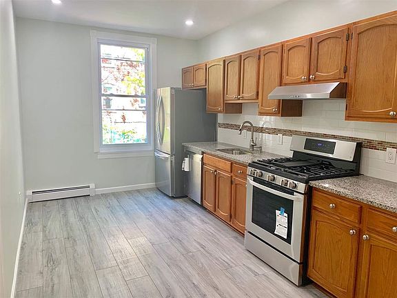 Fully & tastefully renovated 1st floor apartment, few steps to Blvd East with easy transportation(NJ Transit, Shuttles to the Ferry & Light Rail)to New York. Recessed lighting in all rooms, stainless steel appliances, new floors, gut-renovated bathroom. Street Parking. No pets. Credit check, interview, 1Month Broker's commission, 1.5Month security deposit required from tenant. Water is included in rent. Available now!