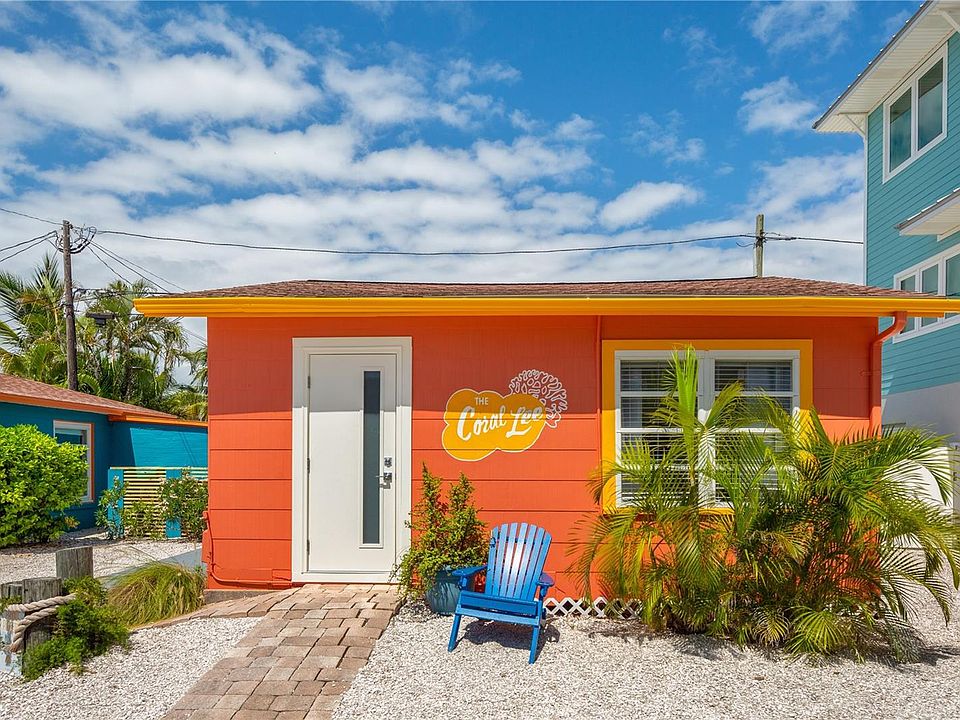 This one-bedroom, one-bathroom cottage named the Coral Lee offers a bright living room with kitchen and the ability to offer daily rentals. The cottage is named in tribute to the original inn next door. This one bedroom, one bath cottage offers a neutral design with pops of color. The kitchenette is open to the living area and features a retro designed refrigerator and new LVP. A new water heater, new kitchen cabinets and new kitchen appliances make this cottage maintenance free. The cottage is bathed in natural light and is located just steps to Sunset Beach. Delicious food and tiki bars are very nearby. Guests will love the few steps to the sand and multitude of entertainment options close by like dolphin tours, pirate ship tour, sunset sailing. Guests will also love the close proximity to John's Pass Village & Boardwalk, Pinellas County's #1 tourist attraction- it's only an 8 minute drive or short trolley ride away. Guests will rave over the 100+ merchants with unique retail shops, restaurants, shelling and fishing tours, boat and jet ski rentals, and parasailing. This cottage can be purchased in tandem with one duplex, three cottages and one vacant lot or individually. The Sunset Inn currently manages the vacation rentals and is willing to continue, if needed.