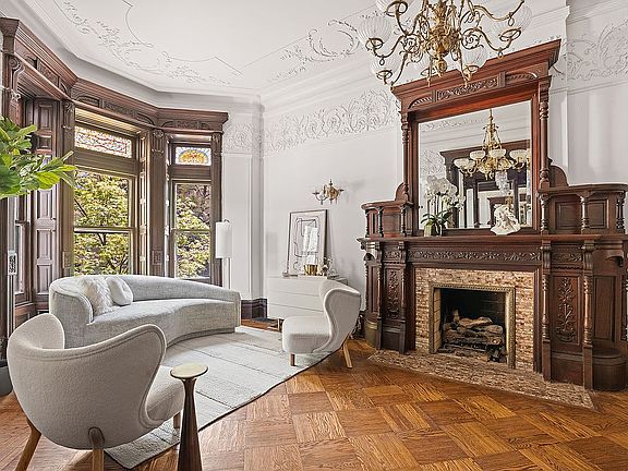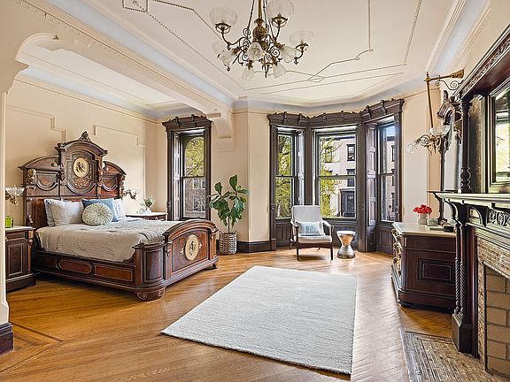 Relish the historic elegance of this finely restored turn-of-the-century townhouse in prime Park Slope brimming with charm and original details. The handsome 5-story home boasting a stunning brownstone façade, magnificent cornice and striking architectural details is a one of a kind 5,600 square foot 2-family property complete with a private rear yard, and full basement. With 7 bedrooms (one a library), 6 full and 2 half baths, the grand residence affords expansive living and great versatility for the buyer’s needs. A wonderful 4-story owner’s unit sits atop a spacious garden level apartment which can be rented out or enjoyed with the rest of the house for fabulous single-family living. Beautiful interiors are graced by exquisite elements like high airy ceilings with intricate period designs, bayed windows with stained glass accents, rich hardwood floors, extensive woodwork, trim and moldings throughout, a gorgeous restored original staircase, 8 fireplaces (7 natural gas, 1 decorative), original light fixtures and more. Ascend the stately front stoop to the parlor floor, an entertainer’s dream with a large parlor/living room, formal dining room and cook’s kitchen - all enhanced by fireplaces, as well as a guest powder room. From the kitchen, stairs lead down to the lovely rear yard. Level two presents a fireside primary bedroom with en-suite bath, second bedroom and full hall bath; and the fourth and fifth floors provide additional sleeping quarters along with a library. On the garden level is a living room with fireplace, eat-in kitchen, bedroom with backyard access, and 1.5 baths. The full cellar has a generous open layout that can serve multiple purposes, and a huge windowed storage room. This home also features 5-zone heating and air conditioning, radiant heat floors in the extensions and each bathroom, a built in outdoor gas grill, and 2 laundry rooms (on the first and fifth floors). Heightening the allure of this extraordinary home is its coveted location on tree-lined 8th Avenue, steps from prized Prospect Park. Here you’re very close to the Grand Army Plaza weekly farmers market, the Brooklyn Library, Brooklyn Museum and Brooklyn Botanic Garden, the shops and restaurants on vibrant 7th Avenue, subway and bus transportation, plus many other conveniences.
