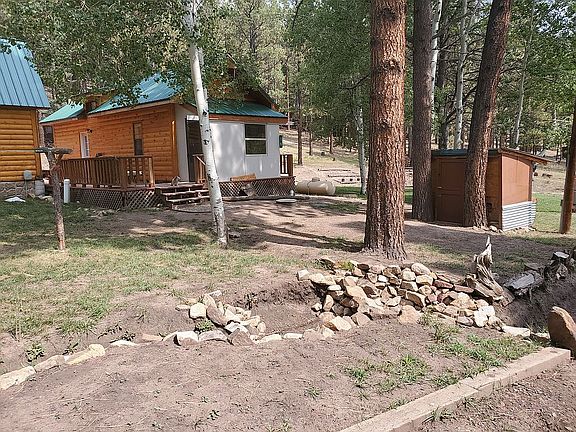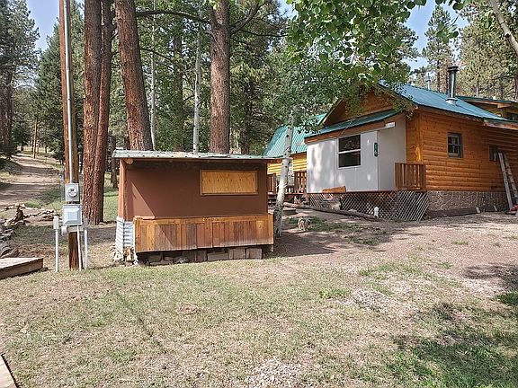 Two cabins in beautiful location minutes from Eagle Nest lake. All season access with sun and shade all day. Two all-season outbuildings great for a "we shed". Wood shed with wood. Two lofts can act as additional sleeping areas. Use as income property (Airbnb) for all year access. Great opportunity awaits you! Must see.