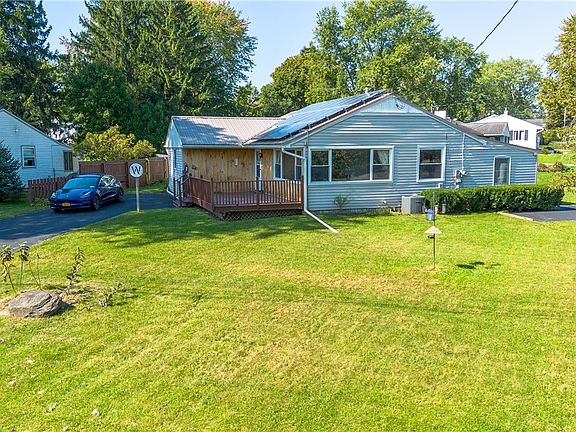 Welcome to 16 Ada Street! This well-maintained ranch sets on almost ¼ acre corner lot in Geneva’s Arbors Neighborhood, offering two blacktop driveways with plenty of parking! The exterior has been updated with vinyl siding, full metal roof and mostly replacement thermal windows. There is a generous front deck area offering a nice additional outside living space, along with a covered rear patio! Inside the large open front living room greets you, offering tons of natural light. The living space flows into the large kitchen and dining space, with lots of cabinetry and storage, overlooking the spacious separate family room with more great picture windows offering great light and access to the covered patio! Just off the kitchen is the full bathroom and three bedrooms, all with ample closet space. A full basement offers lots of additional storage and workshop space, with a direct walk-out to the back yard. Steps to open park space and close to all Geneva’s amenities! Fully owned solar panel array conveys with sale, offering energy efficiency and savings. Come take a look today!