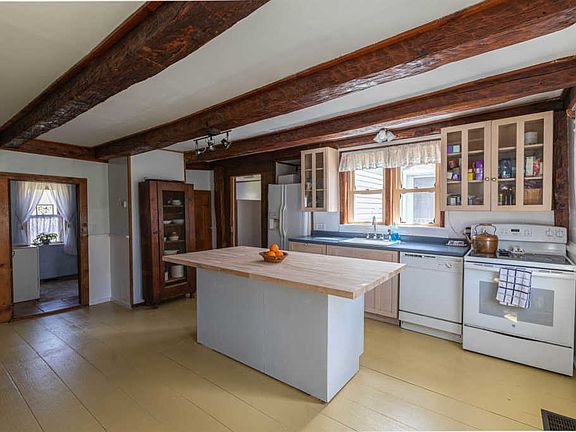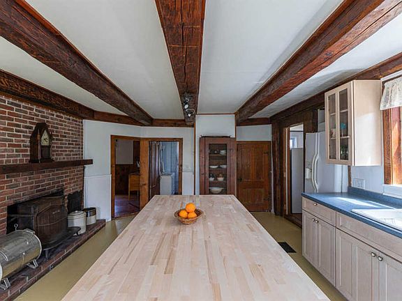 Looking for a home with character and charm? Come see this 3 bedroom, 2 bath home with beautiful sitting areas, and a large center chimney with multiple fireplaces in all major rooms. Enjoy a peaceful back yard with patio and inground pool. Close enough to easily walk into town and next to Powder House Ski hill. New roof in 2019 and FHA heat system in 2018. Wood Stove in Kitchen does not convey.