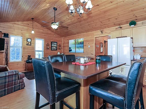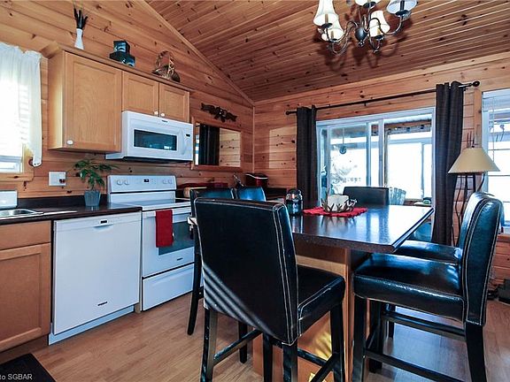 welcome to the ever popular 'Wasaga CountryLife' to your oh so cute 3 br, 4 season cottage. This charmer is located on a non through road, with bush at the front and an idyllic pond at the back. Three good sized bedrooms will accommodate everyone , each complete with flat screen TV. The open concept kitchen and living area features a custom island and is perfect for entertaining. The living area features a cozy gas fireplace and so many windows, it's bright on a cloudy day. Off the kitchen/dining is a three season sunroom (featuring newer windows), perfect for 'bugless' evenings or a spot out of a summer rain shower. Lots of inclusions such as all appliances, wall mount TVs, island chairs and much more.