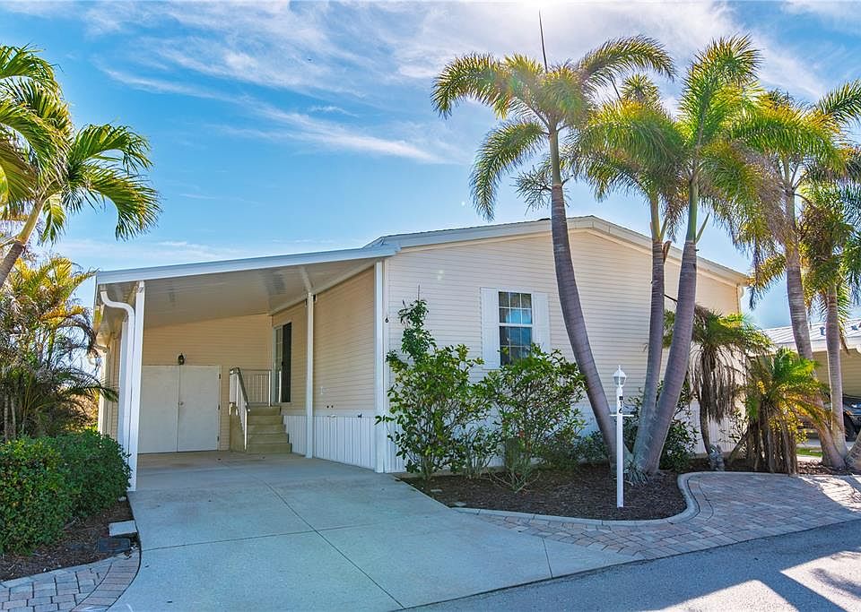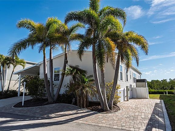 Under contract-accepting backup offers. Nestled in the sought-after 55+ community of Windmill Village, this waterfront gem is a true diamond in the rough, offering serene views overlooking Alligator Creek. This 2005 Champion model home features 1,193 square feet of thoughtfully designed living space, including 2 bedrooms and 2 bathrooms. The open-concept layout highlights a spacious kitchen with ample storage, dual sinks, and seamless flow into the living and dining areas. Step outside to the lanai and enjoy peaceful water views or head to the 7x15 composite dock to fully embrace waterfront living. The home is built with a concrete sill around the base for added durability. A carport accommodates two cars, while additional parking is available on the paver area next to the house, offering convenience for guests or extra vehicles. With its prime location, charming features, and room for personalized updates, this home provides a wonderful opportunity to create your dream retreat in this welcoming, active community. Plus, the HOA of $230.00 covers water, sewer, trash, grass maintenance, common area upkeep, and road maintenance, ensuring a hassle-free lifestyle for residents. Don't miss your chance to experience the comfort and convenience of waterfront living in this meticulously maintained home at Windmill Village! This active lifestyle community features two private marinas, boat ramp, trailer storage yard, horseshoe pits, shuffleboard, bocce ball, billiards, indoor pickleball, a large community center and many clubs catering to your hobby interests. The Pavilion by the heated pool offers an area for holding gatherings. Punta Gorda was voted “#1 Best Small Place to Live” by Money Magazine and Forbes. Purchase price does not include $20,285 for Buy-In Share and Bond, which is refunded when you sell. Don't miss the opportunity to make this thoughtfully upgraded and beautifully maintained home in Windmill Village yours! Schedule your showing today-this is your paradise.