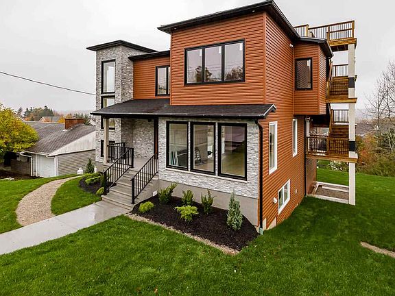 "La Dauphine" sits iconically at the top of a hill overlooking Dartmouth to the Halifax Harbour, transforming the local streetscape. This home is the first in a series inspired by modern French architecture with interplays of concrete, stone, exotic woods, iron, glass, and open design. Stylistically, the facade makes a bold statement with its clean roof lines and grand mahogany front door. You can immediately see the sturdy hemlock braced exterior staircase that leads to the rooftop. Are we piquing your curiosity? Like Paris, you must visit to feel it and you should come prepared to fall in love. Tremendous attention to detail has been applied to capture the essence of a Parisian home and that means use of windows to flood the home with natural light and use of building materials that tell a story and add character. To this point, a unique feature is an eco-wall made of reclaimed African Babinga wood that is located in front living area. Use of exotic wood and stone reminds us of our relationship with nature and makes an artistic, sensory delight that adds quality to everyday living. The interior staircase is enclosed in windows to the outside and open to the main and lower levels, incorporating a live mahogany tree. The 2 storey great room is unbelievable - a whole back wall of windows all the way up and a classic chic fireplace to draw everyone in with a glass mezzanine overlooking the great room. A Parisian inspired home must have a well planned kitchen and this one will not disappoint with its walk-in pantry and easy access to the stairs to the rooftop. The rooftop terrace runs has commanding views of the skyline. This home is a lifestyle celebration, as are all, in our "Ladies of Paris" series.