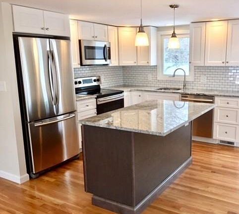 *New to Market **OH Sunday (4/29) 11:30 to 1:00 MOVE Right in!!! Complete Renovation of this Unique and Stylish 7 rm, 3 bdrm., 2 full bath home! This gorgeous sun splashed property is situated on corner lot in the desirable & convenient location! This meticulous home Features: an open concept with designer granite kitchen ,stainless appliances, breakfast Island, beautiful hardwood floors, central air, recessed lighting, lower level family room that could double as a in home office, teen suite, possible in-law and maintenance free exterior, new insulated wintdows, 4 car off driveway just installed and so much more! Great location steps to public transportation minutes to local shopping at Legacy Place near the Dedham line and scenic parks and recreation only add to this homes appeal. Don't let this special property and excellent opportunity pass you by!!