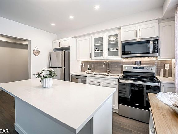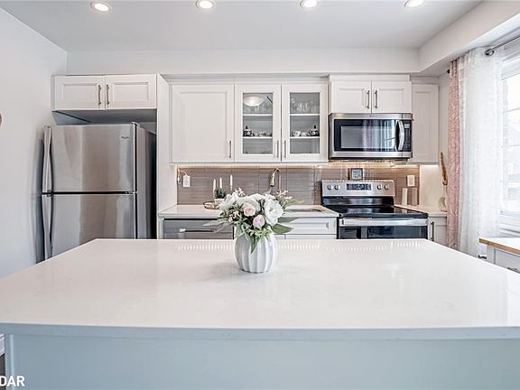 MODERN FREEHOLD TOWNHOME IN A PRIME FAMILY-FRIENDLY LOCATION! Situated in a vibrant, family-friendly neighbourhood, this stylish 3-storey freehold townhome offers the best of comfort, convenience, and contemporary design! Built in 2020, this low-maintenance gem is packed with premium upgrades and modern finishes, making it an excellent opportunity for first-time homebuyers. Step inside to discover a bright and open-concept layout, where pot lights, easy-care flooring, and neutral paint tones create a warm and inviting atmosphere. The sleek kitchen is a true showstopper, featuring quartz countertops, white cabinetry with elegant glass-front accents, a chic tile backsplash, a spacious island, and stainless steel appliances. The adjoining living room is filled with natural light and offers a walkout to a balcony, perfect for morning coffee. A versatile den on this level adds extra functionality and can easily be used as a dining area, home office, or playroom to suit your needs. Upstairs, the primary bedroom offers a double closet and semi-ensuite access. This home offers convenient parking with a single garage and an additional driveway space. Located just moments from Holly Community Park (with sports fields, a playground, and a splash pad), excellent schools, shopping on Mapleview Dr E, and a fantastic selection of dining and entertainment options, this home has it all. Don’t miss the chance to make it your #HomeToStay!