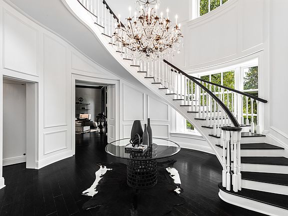 Modern sophistication and style blend perfectly in this beautifully renovated Georgian home, minutes from town on a premier private road with 24/7 guard station. The classically symmetrical residence is surrounded by 4 acres offering mature gardens, specimen trees, landscaped pool, spacious pool/tennis house, floodlit tennis court and five car garaging. The redesigned interior showcases custom materials and meticulous workmanship. Amazing chef's kitchen and open living rooms, all with high ceilings, expanded windows and French doors. The ground floor master suite features a fireplace, luxurious dressing area, stunning marble bathroom and palatial study. Upstairs are three large en-suite bedrooms with WIC. The lower level is designed for entertainment with bar, playrooms, gym and sauna.
