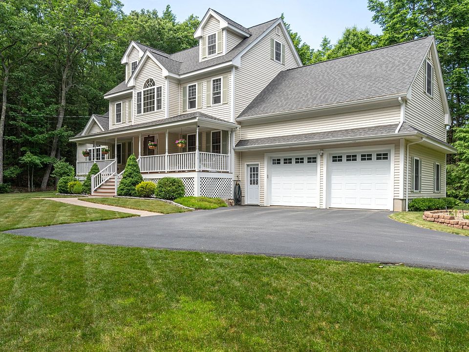This home seamlessly blends comfort and convenience. Step inside to discover a kitchen featuring ample storage and a breakfast bar, perfect for everyday meals and entertaining guests. The living room boasts cathedral ceilings, creating a spacious and airy atmosphere ideal for relaxation and hosting gatherings. Upstairs, the primary bedroom offers a generous layout and an ensuite bathroom for added privacy. Two additional bedrooms provide plenty of space for family or guests. Outside, enjoy a private backyard with a large deck, ideal for outdoor gatherings or quiet evenings. The front yard features an irrigation system for easy maintenance, complemented by a charming farmer's porch—a perfect spot for enjoying morning coffee or a good book. Additional highlights include a two-car garage and extra storage options. Central AC ensures year-round comfort, while a whole house generator provides peace of mind. Versatile spaces can serve as home gyms or offices, catering to various lifestyle needs. Conveniently located just an hour from Boston, this property offers easy access to the Seacoast, Manchester, and Concord—a prime location. Whether commuting to work or exploring nearby Onway Lake and Pawtuckaway State Park, outdoor activities and natural beauty are within moments reach.