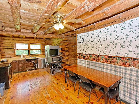 Two Log homes on Property. Large 4 bedroom main cabin and a detached two bedroom guest cottage or in-law unit. Small cabin has central air and two car garage. Indoor parking for 4 cars. Huge workshop garage. Valted ceiling in great room. The home is like being in Adirondack Park, pine trees, peaceful quiet, A vacation home that you live in. Hidden from it all yet, 15 Minutes from Albany, Close to Grocery shopping, lakes and swimming and great schools. In need of remodeling and updating.