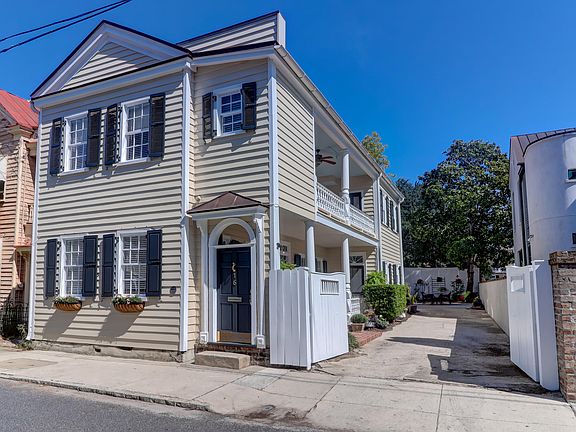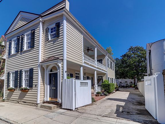 Charming circa 1880 Charleston Single home with an attached carriage house located in the heart of the Historic District.A very short walk to all the great restaurants and shops that Charleston has to offer.The main house features a formal living room, separate dining room, kitchen with granite counter tops, sun room, half bath and laundry area on the first floor.Three bedrooms and two baths plus an additional room which would make a great office or sitting room, are located on the second floor. A real bonus is the two story attached Carriage House with its own private entrance.The Carriage House has a kitchen, with an island and living room on the first floor.Upstairs there is one bedroom and a large bathroom. Granite,wood floors and carpet are featured in the Carriage House.There is a separate electric meter the Carriage House.The piazzas located on the first and second floor of the main house provide a great place to relax and enjoy your morning coffee or favorite beverage in the afternoon.Other special features include a beautiful private patio/courtyard and off street parking for 2 plus cars (stacked)with an electric gate and a small storage shed great for garden tools.This restored home received the Carolopis Award in 1980. The exterior of the home was recently painted and the copper roof is approximately 2 years old.Fabulous location!