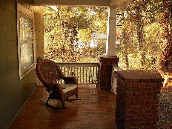 A classic arts + crafts home in the heart of downtown Asheville, built in 1924 and lovingly updated, all period details intact. Walk to hospitals, downtown, or Biltmore Village. There are hardwood floors throughout, and a spacious open floor plan with a massive walk-around brick fireplace. Recent updates include a gas range, Bosch dishwasher and stainless steel refrigerator, new architectural roof shingles and prefinished metal roof over the porch, new gas hot water heater, new Carrier furnace, and new connection to the city sewer system. The house has central air, natural gas heat, 9 foot+ ceilings downstairs, two fireplaces, a wide front porch and a screened back porch with sunset views across the western mountains. The basement is ideal as a large workshop/studio space, with tall 12’-14’ brick walls and daylight on three sides giving it a loft-like feel. Massive carriage doors open onto a small private garden.