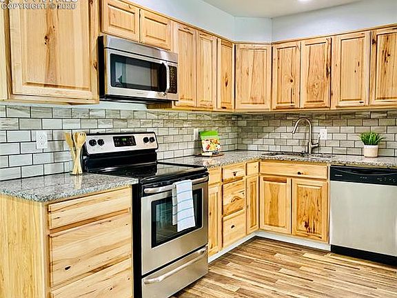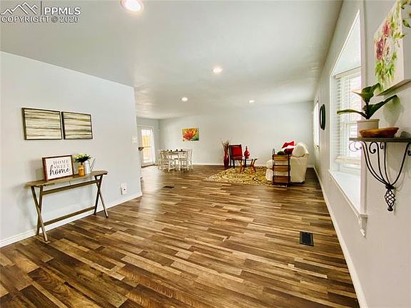 Looking for a spacious totally updated ranch style east of downtown Colorado Springs? You'll find easy care living here with the beautiful vinyl laminate plank flooring throughout this home. Large front bay windows bring bright natural light into the room. A remodeled kitchen boasts granite countertops, tile backsplash, hickory cabinets, stainless steel appliances; and built-in breakfast bar with desk area offer unique use of space. French doors in the dining room open to a wide patio and fully fenced, private backyard. Be sure to notice the many special features added to this home! Starting with remote control ceiling fans in each of the three bedrooms; installed can lighting, an efficiency furnace, updated electrical, vinyl windows and the pure enjoyment of a tankless "on demand" water heater! The spa like feel to the bathroom features an extra large granite top vanity, pedestal sink and beautifully laid wood-look tile. Did we mention the bonus workshop/she shed/man cave in the backyard? - perfect for that "extra room", home-gym, or added storage options.Xeriscaping in the front yard affords low maintenance care, while the back yard yields plenty of opportunity for gardens, fire pit and much more. Minutes from downtown, shopping malls, restaurants and parks; all make this an exceptional find.