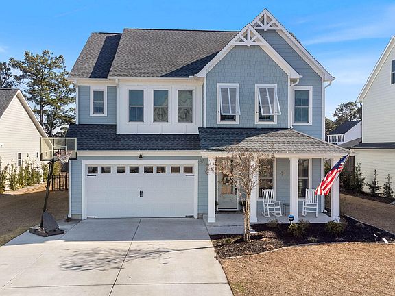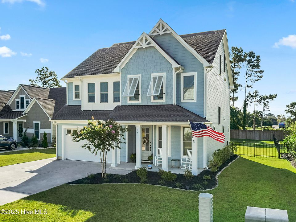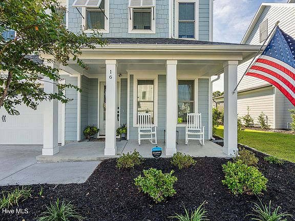 Welcome to 16 N Artisan Drive nestled in the highly desired neighborhood of Wyndwater. This Charleston Seaside floor plan was built by Robuck in 2022 and is a perfect combination of functionality and elevated coastal living with 10' ceilings, 5 panel doors, and an elegantly neutral color palette throughout. This bright and spacious home features 4 second floor bedrooms (finished with ceiling fans and blinds), a first floor office/flex room with French doors, and a fully finished third floor with a full bath and storage - perfect that is perfect for movie night or as a separate guest area. The extended eat-in kitchen is warm and welcoming and is a chef's dream with a large island with a prep sink, quartz countertops and a walk-in pantry. The primary bedroom suite includes a hand-tiled shower along with a large garden tub, dual vanities and a large walk-in closet. This home's layout is functional while providing ample space for living, working and playing - both inside and out. In addition to a two-car garage with elevated storage, a 10x12 shed is tucked into the backyard for tinkering and things. Enjoy the coastal Carolina evenings from the fully screened back porch while overlooking a fully-fenced backyard. Additionally, the home is situated within a ''T'' so there is no through or construction traffic and has a 5' driveway expansion. Seller is also offering a 1-year home warranty through 2-10 Warranty or company of choice. Conveniently located within Hampstead, just a short drive from Topsail schools, Kiwanis Park, public boat ramps and local beaches.