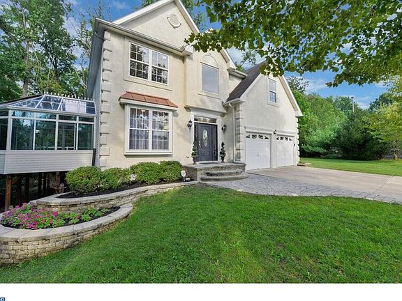 Gorgeous home in Sawyer's Creek Development situated on private cul-de-sac. Stucco exterior with EPHenry walkway and steps, 2-car garage and upgraded front door. Two-story foyer entrance leads to sitting room with architectural columns. You enter the glass conservatory through the French doors in the formal Dining Room and leads to the elevated Trek deck with glass railing. Kitchen has a multitude of 42" cabinets with soft closing mechanisms, crown molding, and under-mount lighting. Plenty of granite countertops, large center granite island, and a walk-in pantry. Stainless Steel appliance package with gas range, and glass mosaic tile backsplash. Upgraded sliding door leads from kitchen to large deck and heavily wooded lot. Great Room has a beautiful tile mantel surrounding gas fireplace, and also has recessed lighting, and wainscoting. Powder room and dedicated laundry room with gas hook-up finish off the first floor. There is also Laminate wood floors and upgraded 6" baseboards t/o first floor. Master bedroom has his and hers walk-in closets, tray ceiling, recessed lighting, and ceiling fan. Master Bath features double vanity, soaking tub, tile shower stall, and Travertine floor. Four additional very spacious bedrooms and updated hall bath with Travertine floor finish off the second floor; all bedrooms with upgraded carpeting. Basement (39'x36') with walk-out. Situated in Washington Township and close to shopping, restaurants, medical facilities, great schools, and major highways to Philadelphia and shore points. Don't miss your chance to own this beautiful home.