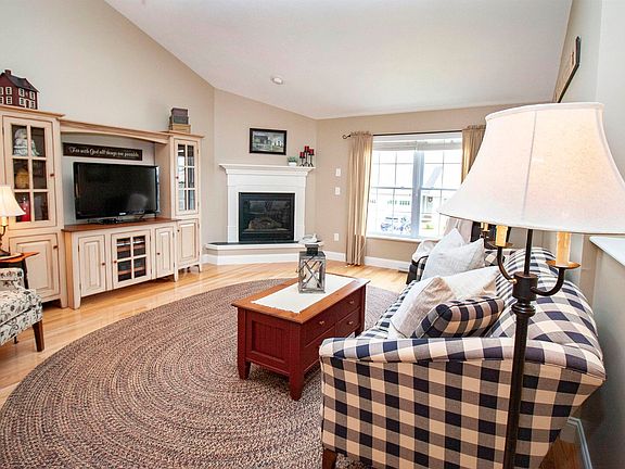 GPS may say 16 Autumn Ln, SANDOWN! Comfortable, Quiet, and Carefree Living at Angle Pond Woods, a premier 55+ adult community. Enjoy the tranquil feeling of living in the country, yet still conveniently located between the city and the seacoast. From the meticulous care of its original owner to the gleaming hardwood floors throughout the 1st floor, to double sliders to a deck overlooking the lovely greenspace, to the matching oil rubbed bronze hardware and light fixtures throughout, to the whole house generator, you will appreciate it all! The open floor plan offers a gas fireplaced living room with cathedral ceilings, an eat-in kitchen with pantry, a master suite with double closets, double vanity and step-in oversized shower, plus a 2nd bedroom and full bath. Two finished rooms and a ¾ bath in the walk-out lower level offers additional quiet space & storage. Walk/drive to the private area on Angle Pond which features a sandy beach, dock, pavilion, picnic tables, fire pit, horse shoe pit, kayak and canoe storage racks and plenty of parking. Additionally, there are paved trails throughout the community (for residents only) and storage for your boat, RV’s, extra vehicle or trailer in the secure area by the community fishing pond. Low condo fees at $310/mo includes landscaping, road maintenance, snow removal & septic. Well run assoc. has strong reserves. Take pleasure in a low maintenance environment giving you time to enjoy community life.
