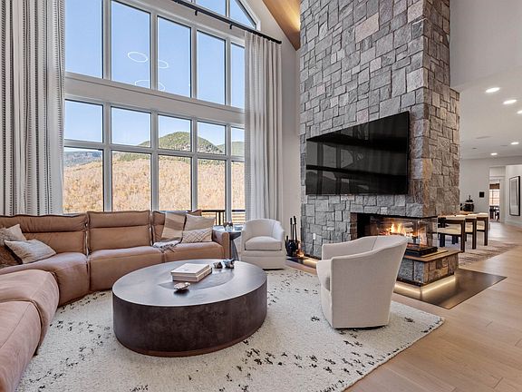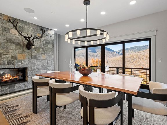On top of the world at The Landing at Loon Mountain - A dramatic stone exterior, expansive energy-efficient windows, and multiple gabled rooflines create a commanding presence while blending seamlessly with the natural surroundings. Perched at the height of neighborhood this home has been thoughtfully designed to capture natural light and scenic views, the interior offers a warm, refined atmosphere with a strong connection to nature. Premium finishes include European white oak floors, Calacatta Crema marble countertops, Visual Comfort lighting, smart lighting controls, and whole-house Sonos audio. The chef’s kitchen features high-end Thermador appliances, a 60” range and hood with buried motor, GE Monogram electric pizza oven, and convection microwave. Designed for both comfort and entertaining, the home offers a fully soundproofed executive office, billiard and game room, fitness space, and a lockable, temperature-controlled wine vault. Every bedroom includes its own custom bathroom with heated floors and motion-sensor lighting. Exceptional infrastructure includes radiant heat on the primary and second levels, heat pumps on the upper level, 400-amp electric service, whole-house standby generator, underground 1,000-gallon LP tank, and a comprehensive security system. Outdoor living shines with an expansive elevated deck, covered lower patio, and private hot tub area. Set against a wooded backdrop, the property offers privacy, scenic views, and an authentic mountain retreat feel. Enjoy a peaceful lifestyle free from short-term rentals and without the added expense of pool or resort amenities-delivering quiet enjoyment, low overhead, and true mountain luxury. A dedicated shuttle provides effortless access to Loon Mountain Resort, making it easier to enjoy world-class skiing. The area is robust with opportunities for adventure and Lincoln serves as the hub and central location to the best of the White Mountains.