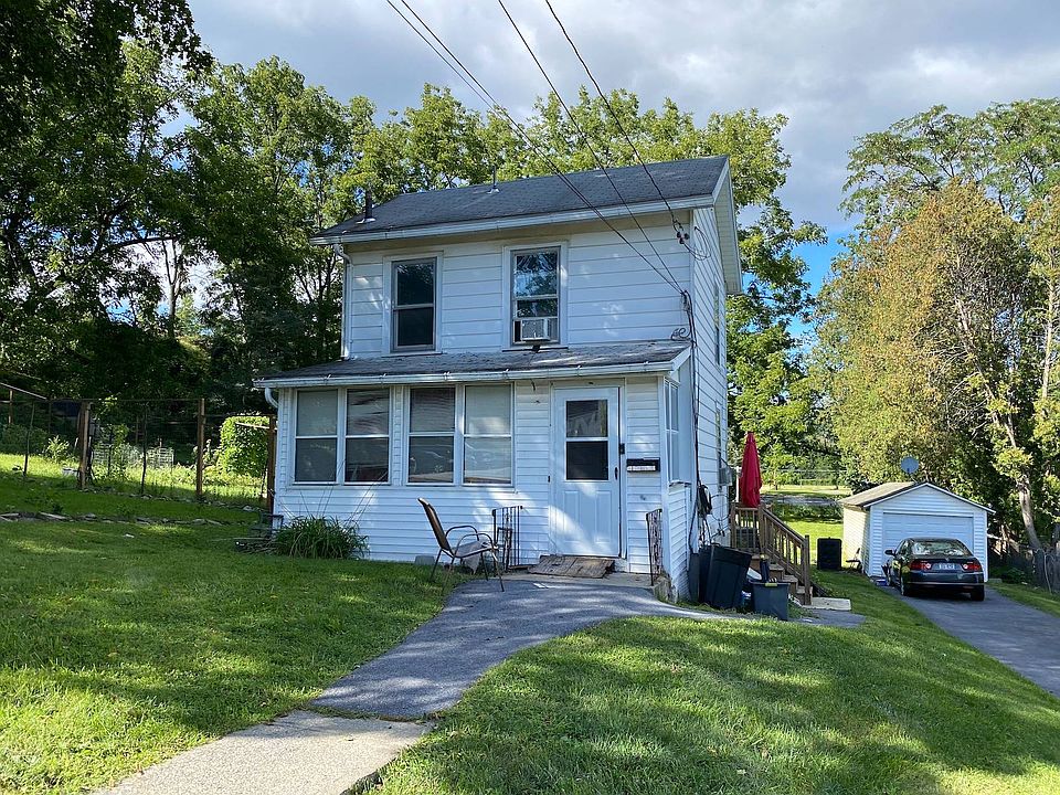 ATTENTION INVESTORS! This charming 2 bedroom, 1 bathroom house has a detached garage and a basement. The house and garage sit on a large lot (50' X 160'). New driveway! New deck! Large kitchen and Living room, Newer gas fired heating and hot water system. House could use some TLC. Adjacent to ball park on quiet street.