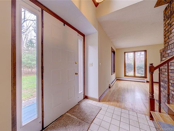 Just a wonderful country property and setting in the heart of bucolic Columbia, CT. A New England Cape Cod style home set on a gorgeous 4 acre parcel with all the expected trimmings of Gazebo, small shed/barn, garden and fire pit areas. Possibility to have a horse or other animal friends on your property! Walk in to the first floor from your covered deck area to an eat-in kitchen, front to back Living room with a cozy fireplace, along with a dining room and half bath. The hardwood floors on this level have just been refinished for you so you can move right in. Upstairs you'll find three bedrooms, including the Master with fireplace, a full upper bath and then a nice surprise. Go through one of the bedrooms large closet area to find a huge unfinished bonus area that extends over the two car attached garage. Perfect for the hobbyist as it stands now, or potentially as a finished area, complete with it's own exterior staircase access to be used as a separate space. The full walkout basement has two finished rooms; a family or rec room space and a separate guest room or office. The unfinished areas hold the utilities, laundry and plenty of good storage space. The door walking out the rear brings you to your great yard spaces and access to abundant nature. HUGE rear deck. Great utilities here including a multi-zoned furnace with great domestic hot water supply, and plenty of electrical circuits complete with generator wiring! Low taxes and high school choice in Columbia.