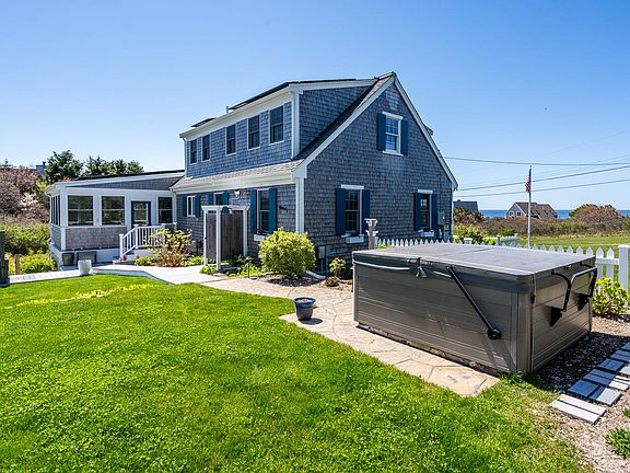 Ready for prime summer occupancy, this move-in ready Cape Cod charmer is the perfect getaway. Featuring sweeping water views from nearly every room and deeded beach rights, you are just steps away from Cape Cod Bay. Enjoy blissful seaside living without the worry of waterfront property. Extensively renovated and thoughtfully updated, this immaculate home offers four bedrooms, and two bathrooms, an open concept layout that is perfect for entertaining, kitchen with a large custom island, heated four-season sunroom and living room with gas fireplace. Both bathrooms were renovated in 2021 with new ceramic tile, new vanities, and rain-head showers. There is a finished den on the lower level and abundant storage throughout. With a one-car garage and ample parking, invite all your friends to enjoy an afternoon on the front deck to watch the sunset and then gather in the gracious backyard living space with multiple areas for comfortable seating and dining. Relax under the stars in the large salt water hot tub that seats six (also with water views), and feast your eyes on the beautifully landscaped grounds. This pristine home in a sought after location is not to be missed!