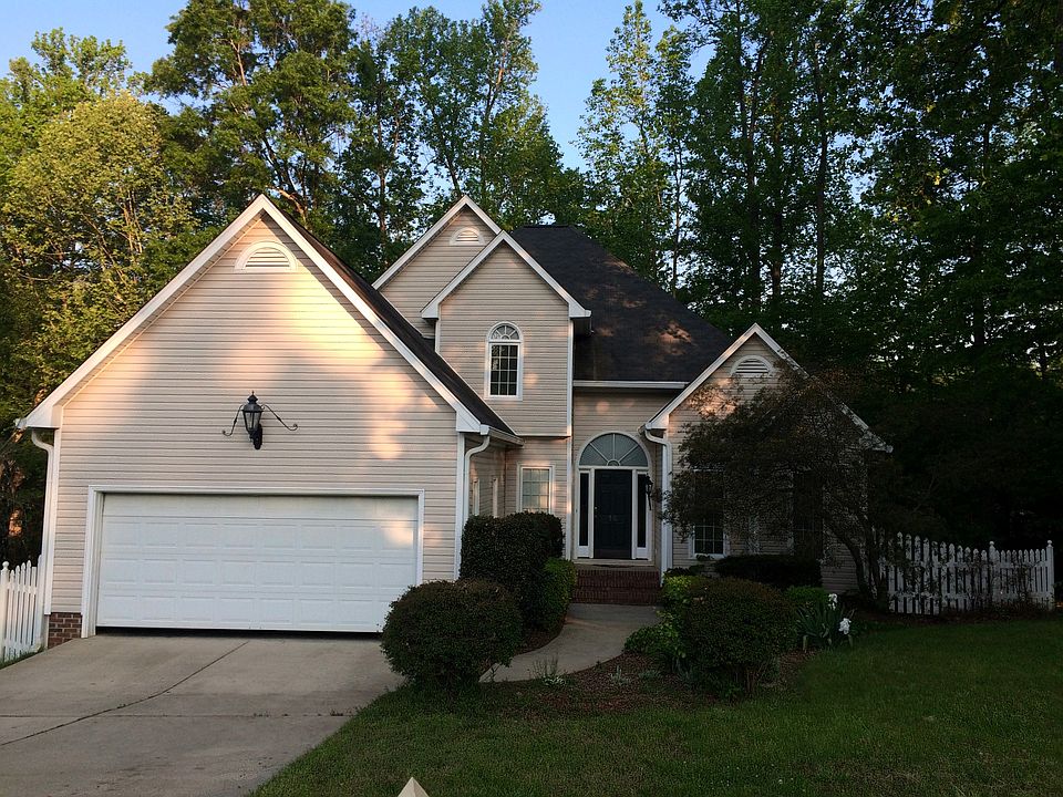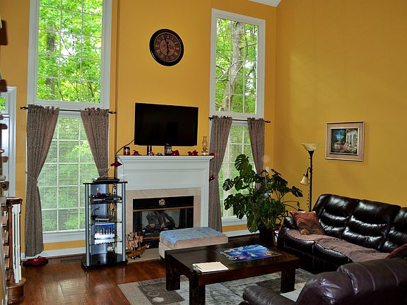 Great curb appeal, cul-de-sac setting, vinyl exterior, soaring two story ceilings in the great room, hardwood floors, master bedroom on the main level, master bath with large separate shower and double sinks, great storage area above garage, private deck.