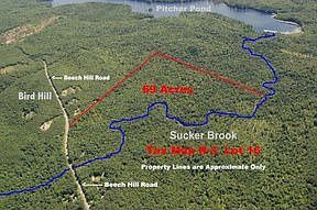 Northport - 69+- Acres. 2,500'+ Frontage on Sucker Brook with old dam site. 5 Mi. to Belfast, Bayside & Ocean. $99,000.