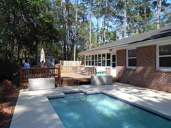 Just Listed, in a quiet neighborhood. Clean and neat, this home has 3 bedrooms 2 bathrooms, open floor plan with gas fireplace, sunroom, laundry room, deck, concrete pool, privacy fence around the back yard, fresh plantings, with blueberry bushes, persimmons and figs. There is detached garage that has a bedroom and full bathroom. Every aspect of this home has been redone and is modern. The back yard has a large deck with a in ground concrete pool. Plus 2 storage buildings.