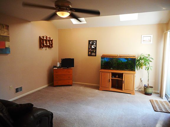 BACK ON MARKET DUE TO BUYERS FINANCING. Perfectly located twin home now with a new roof at the end of a cul-de-sac. Nice open floor plan with 2 story living room. Family room has vaulted ceiling with 2 sky lights and a sliding door to paver patio in the back yard. Kitchen opens to family room. Upgraded windows in home except kitchen and front bay window. Nice size bedrooms all with fans. Nice size yard with a pave patio and a shed. 1 car garage and plenty of driveway to park 2 cars. Seller offering 2-10 warranty with enhanced HVAC.