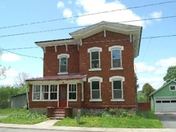 A large brick 2-story, 4 bedroom home. Large detached garage. Front enclosed porch. Hardwood floors. Eat-in kitchen. Newer furnace. Good Condition