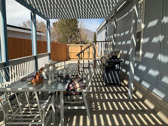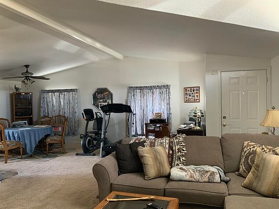 3 bedroom 2 bathroom with views of the White Mountains from the front patio. Vaulted ceilings, open floor plan, updated kitchen with painted cabinets, quartz counter tops, newer appliances. Spacious master bedroom and double sinks in the en suite bathroom. Detached garage, covered back patio, storage shed.