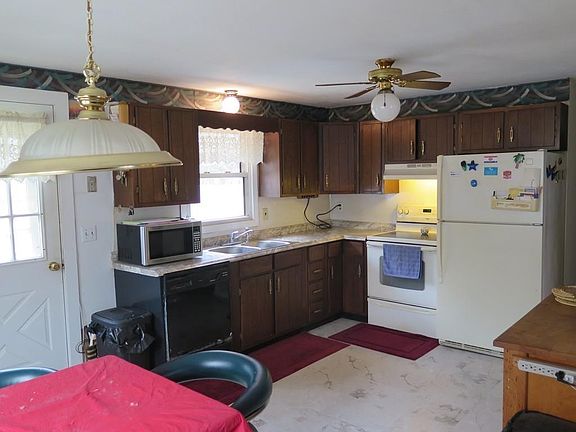 Three bedroom ranch style home is situated in an area of pretty homes with private yard, vinyl siding, new architectural shingles (2014) large deck and professional landscaping. A perfect home awaiting your personal touch with hardwood floors, very spacious - open living room and kitchen area. Large eat-in kitchen with corner hutch, stove, refrigerator, dishwasher, stainless sink and disposal. Living room with bricked hearth for wood stove, bay window, hardwood flooring and cloak closet. Master bedroom is large with closet and convenient half bath, two additional bedrooms each with hardwood flooring. Full basement has laundry area, poured concrete floor and two partially finished rooms. OPEN HOUSE SUNDAY Jan 31st 12 - 2 PM.
