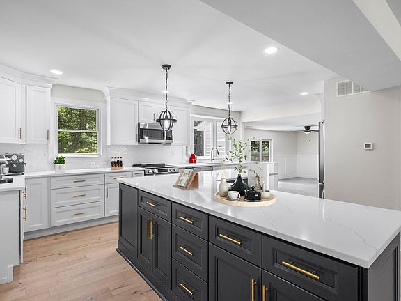 Light, bright and modern meets classic center hall colonial in desirable Oak Forest Estates! Spacious and completely renovated inside and out. Don't sleep on this 4 bedroom 3 bath stunner featuring remodeled open concept kitchen with huge island and full appliance package. Cabinets galore, subway tile backsplash and Miraggio quartz countertops. Step-down to large family room with custom shiplap wainscotting & fireplace and sliders to brand new composite and azek deck. Sizeable laundry room with double pantry closet and washer/dryer included. Additional room on main floor could be utilized as formal living room, office or playroom. All baths completely renovated. New Anderson doors and windows. New carpet, hardwood floors and trim. Freshly painted throughout. New recessed lighting in kitchen and primary bedroom. Custom stair railings. 4 generously sized bedrooms. Primary boasts hard wood flooring, on-suite bath and remodeled walk-in closet. All new ceiling fans/lights throughout. New septic system, upgraded pressure tank, pex plumbing, water heater and water softener system. New siding and exterior paint. Fresh landscaping and mulch. sprinkler system. 10 minutes to GS Parkway and Ocean City Beaches, 2 blocks from Caldwell Park and Cameron Wildlife Sanctuary Some photos virtually staged.