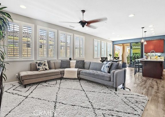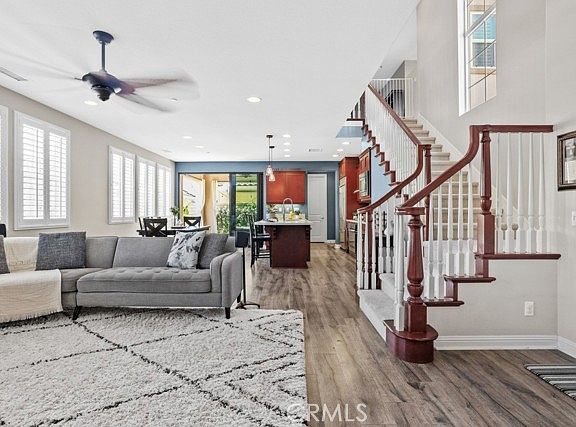 Beautifully Upgraded, Open Concept, Fantastic Floor Plan! Welcome to 16 Bluebell! Featuring Four Bedrooms, Three Bathrooms, Multi Purpose Upstairs Loft and Solar Panels. Enter the Expansive Great Room and immediately notice the Gorgeous Wide Plank Wood Look Laminate Floors running throughout the Main Floor. Plantations Shutters, Designer Interior Paint and an abundance of Natural Light create the optimal space for the family. Continue into the Chefs Kitchen to indulge in the upgrades including Gorgeous Neutral Quartz Counter Tops, Wood Cabinets, Walk-In Pantry, Upgraded Stainless Steel Appliances, Built-In Refrigerator, Pendant Lighting and Center Island w/bar Seating. The dining area is just off the kitchen and opens to the California Room through massive Three Panel Doors creating the Indoor/Outdoor California Lifestyle we all love! The California room provides the perfect space to Entertain, Dine outside or just relax. The highly desired Full Bathroom and Convenient Downstairs Bedroom round out the first floor. Community offers tennis courts and swimming pools. Tenants pay the utilities, no smoking.