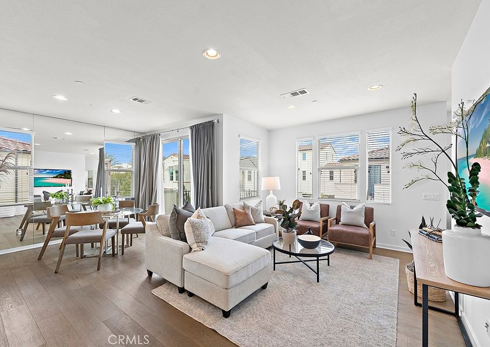 This magnificent townhome-style condo boasts two bedrooms, two bathrooms and is situated in the sought-after Lyons Villas at Sendero. You can access the foyer from either the front door or one of the two direct-access garages. Upon ascending the stairs, you will be greeted by an impressive open floor plan that is reminiscent of a model home that has gorgeous wood flooring. Notable features of this space include an upgraded kitchen, complete with a breakfast island bar, stainless steel appliances, and quartz countertops, as well as high vaulted ceilings and recessed lighting throughout the home. The master bedroom is spacious and comes with vaulted ceilings, a massive walk-in closet, and a luxurious master bathroom. The amenities available in Sendero are simply amazing! The neighborhood’s convenient, walkable locations are just footsteps from The Outpost’s resort-style pool and spa, outdoor dining area with barbecue, hammock garden, Bocce courts, fire pits and clubhouse with event rooms. A convenient setting near Ortega Highway and Antonio Parkway and just miles from Doheny Beach and San Juan Capistrano also offers homebuyers easy accessibility to work and leisure.