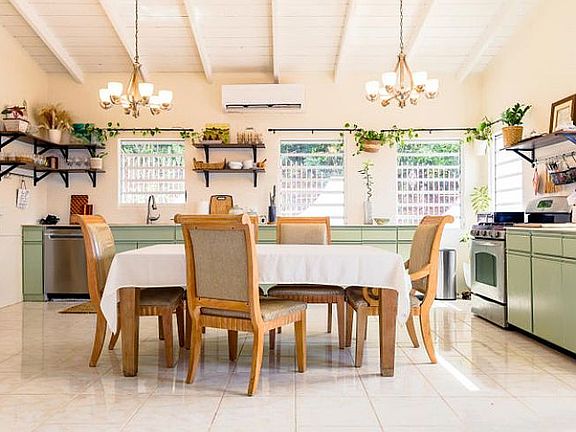 Perched above Santa Maria beach on the cool and tropical west end of St. Thomas, sits Mango Cove Villa. The perfect oasis to sit back and relax in total privacy. The views and colors of the ocean and lush green hillsides will mesmerize by day and the colors of the sunset will impress in the evenings. Gated at the end of a cul-de-sac, with plenty of flat parking and easy access to the home, this secluded home features a flexible floor plan that can include 5 bedrooms and 3 bathrooms under one roof. Alternatively the villa can be divided into a 3 bedroom 2 bathroom home with a 2 bedroom 1 bathroom rental.The current owners are generating on average $4k/month in short term rental income. Also below the home is an additional space that could be an "in-law suite," office, gym or workshop space, awaiting your finishing touches.