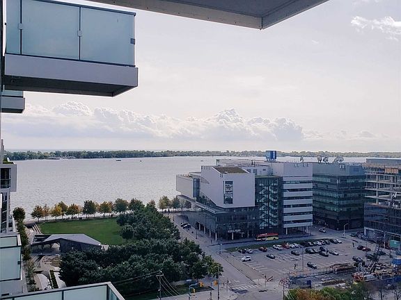 Waterfront Development "Monde", View Of The Lake & City! Bright & Spacious Unit 712 Sf + Large Balcony,1 Bdrm & Den, Large Kitchen W-Island & Breakfast Bar, Open Concept Living & Dining Room W/Floor To Ceiling Windows, High-End Finishings, Hardwood Flrs. Easy Access To Waterfront, Transit, George Brown College, Loblaws, Dvp/Gardiner Exp Way, Shuttle To Union Stn. Enjoy Use Of Concierge, State Of The Art Gym, Guest Suites, Pool, Steam Rm,Sauna & Much More.