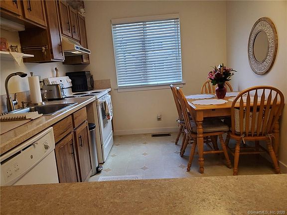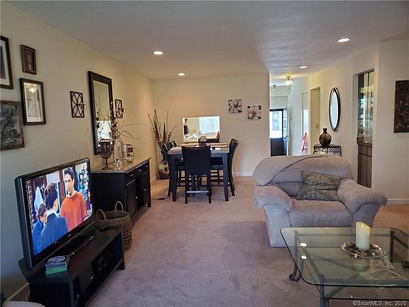 Enjoy the super convenient life style of this spacious top floor two-bedroom condo that has a private entrance and the ease of one level living, as well an eat in kitchen, spacious dining area, and a very large open living room with sliders to a private deck. Master bedroom suite has a full bath, dressing area, and walk in closet with 2 additional closets. The 2nd bedroom is very spacious and has ample closet space. This well maintained condo has added character with beautiful crown moldings through out. The condo includes a washer & dryer in unit, central air, assigned parking, plenty of visitor parking, low common charges, and a huge private storage room. Enjoy the benefits of this well managed & maintained Garden Style Complex hidden in a quiet Springdale neighborhood with close proximity to train, Merritt pkwy, shops, movies, restaurants, park & school. This is a pet friendly property!
