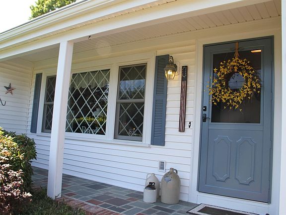 This beautifully maintained Ranch is located in the Par Three Estates, a neighborhood amidst Blue Rock Golf Course. Easy to maintain vinyl sided Ranch. A meticulously landscaped front yard leads to a roofed stone porch entrance. This home's 1,336 square foot open floor plan offers spacious living areas featuring picture windows, wainscoting and crown moldings, and hidden wood floors under the carpeting. Living room leads to a Dining room large enough for any family celebration. Direct entrance from the garage to an eat-in kitchen, sitting area with a classic wood burning brick fireplace surrounded by a custom wood mantel, glass sliders leads from the sitting room out onto a covered patio in the private yard. This home was well loved by one that appreciates collecting and caring for fine things.