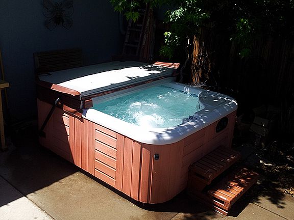 Beautiful home with hot tub & upgrades! Numerous upgrades make this a great home! The kitchen has semi-custom cabinetry, garden window, upgraded sink/faucet, newer built in microwave. All major appliances and front loader washer and dryer are included. There’s a built in breakfast bar and plenty of storage. Newer track lighting fixtures, new toilets in both bathrooms. Bonus living area for den/office. Separate dining area and spacious living room. The master has a private bath, separate shower and large walk in closet. Newer carpet. The yard comes with a nice hot tub, patio, covered deck and garden spot, 2-car garage! Lot Rent: 620/mo | Includes: Water, Garbage, Sewer, Lawn