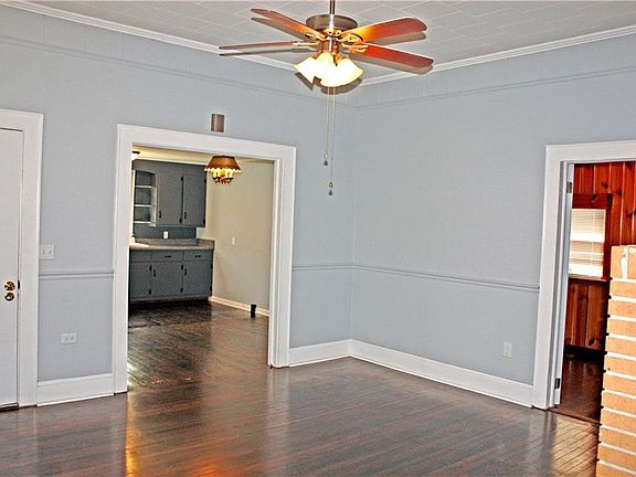 Move In Ready!!!!!!Older Charming home with fresh paint, some knotty pine walls and hardwood floors refinished throughout. Home has been maintained thru the years and remodeled the bathroom and Kitchen. Kitchen and dining room have been opened up with new countertops and lighting new Stainless/Black electric range, wood burning brick fireplace(could be turned into gas) in living room, Master bedroom has access to room that could be as private office or Nursery. Home features front stoop porch, side porch 15.1x6.2 and a back screen enclosed porch 16 x 10. Gas pack HVAC. Level easy to maintain yard. Detached Double Garage!! Seller is motiivated Bring your buyers!