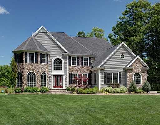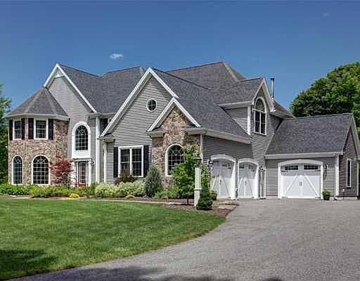 Custom built Colonial on private setting w/Brazilian cherry floors, crown moldings, tray ceilings and central A/C. Custom cherry cabinets, w/Viking appliances. 4BR's w/private baths, second floor media room w/built-in sound system. 3 car heated garage.