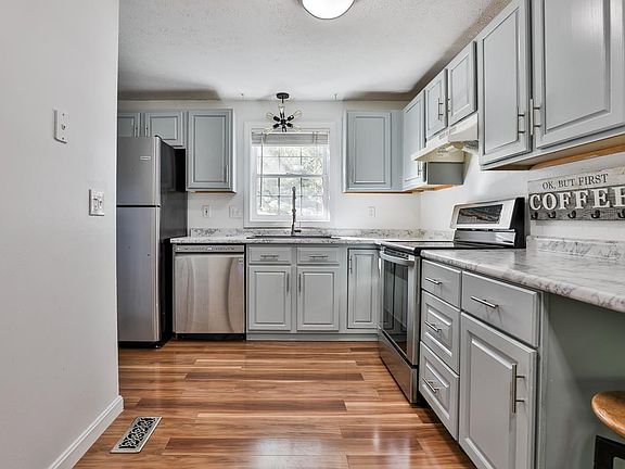 Your wait is over! This immaculate, move-in ready, 2 bed 1.5 bath townhouse has updates throughout. Located in a small, private community and close to highways, shopping, and schools. Features central A/C and natural gas heating. First floor boasts stunning, updated, eat-in kitchen with newer stainless-steel appliances and countertops. Spacious living room with gas fireplace. Open and bright dining room. Updated half bath. Second floor features 2 spacious bedrooms with plenty of natural light and a full bath. Finished walk-out basement complete with laundry room, storage room and a large bonus room that will be great for additional living space. As you walk outside, enjoy your private patio and wooded yard facing the brook. This great commuter home could be yours. Schedule your showing today! Showings begin Saturday, August 28th, at the open house 10:00 AM-12:00 PM.