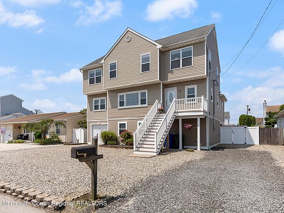 Water views in Brick Township! Welcome to our newest listing! This home was raised and renovated after Sandy and features almost 2,400 square feet of living space, 5 bedrooms, 2.5 bathrooms, a one car garage, newer HVAC system, and spectacular views of the bay! Upon entry, you will walk into an open-concept living and dining space featuring bamboo floors throughout the first floor. Following into the kitchen, you will find white cabinetry, granite countertops, stainless steel appliances, recessed lighting, and a built in pantry. A secondary living room/den sits behind the kitchen and features a vaulted ceiling and a sliding door leading to the backyard. The first floor also features two bedrooms and a full bathroom. On the second floor, you will find the primary bedroom with a beautiful view of the bay and a walk-in closet. The en-suite bathroom features a double vanity with granite countertops, tile floors, and an oversized stall shower. The second floor also offers an additional 2 bedrooms and a half bathroom.