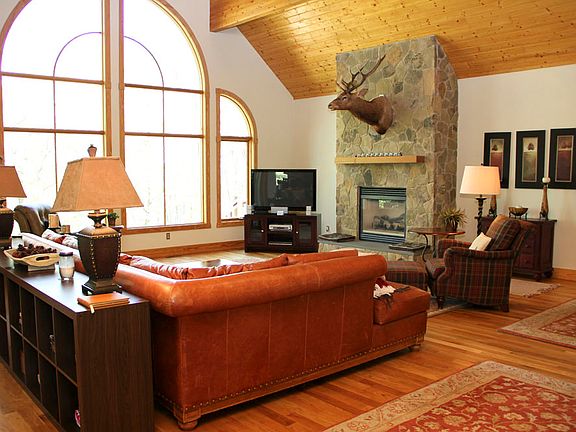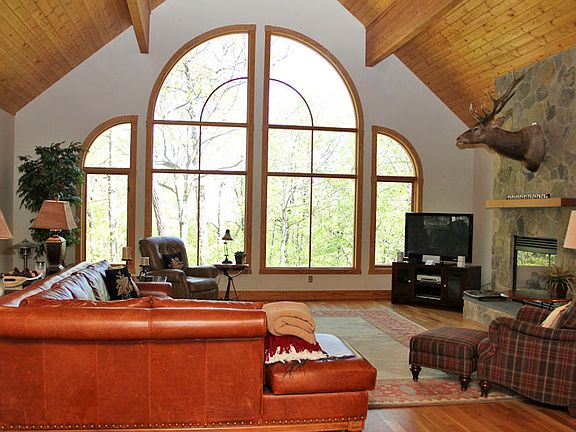 Luxury mountain home custom built with the highest quality interior and exterior finishes. Open and bright floor plan with generous rooms.Cathedral ceilings throughout the house. Great room features floor to clings windows offering Shenandoah Valley views in the winter and Nature views in the summer. Floor to ceiling stone fireplace. Beautiful pine floors and ceilings.Chefs kitchen.Large deck, hot tub. Spacious loft for extra sleeping space.Walk to ski shuttle bus stop and Spa & Fitness center.